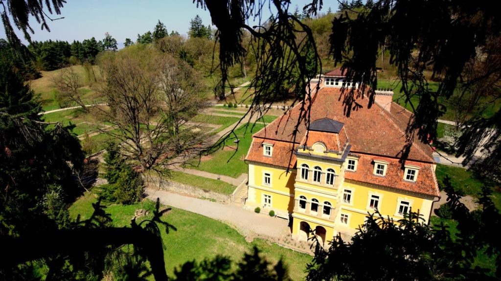A napjainkban látható kastély alapját a reneszánsz udvarház képezi. Az előreugró tornác alsó szintje zárt, egyetlen nyílása a bejárat íves kőkapuja. Az oszlopos tornác emeleti része nyitott, az oldalakon félköríves nyílások láthatók. A falakat faltükrökkel és párkányokkal osztották meg, a tagozatokat színezéssel is elkülönítették egymástól.