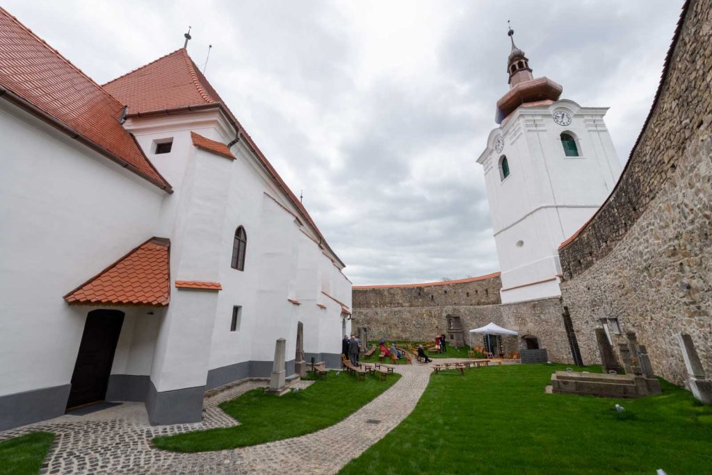 A templom első okleveles említése 1332-ből származik. Az eredeti ősi templom, amely a XIII. században épült, jóval kisebb volt a mainál, annak keleti része lehetett. A templom mai késő gótikus alakját valószínűleg 1547-ben nyerte el, ekkor építtette át saját költségen Daczó Pál patrónus. A sorozatos földrengések többször is kárt tettek a templomban. Az egyházi építményt eredetileg két fal – várgyűrű – vette körül, és két védőtornya volt. A külső falat az egyházközség 1786-ban lebontatta, ezekből a kövekből építették, II. József rendeletére, a német iskolának szánt épületet, mely a harangtorony mellett áll és napjainkban kántori lakként szolgál.